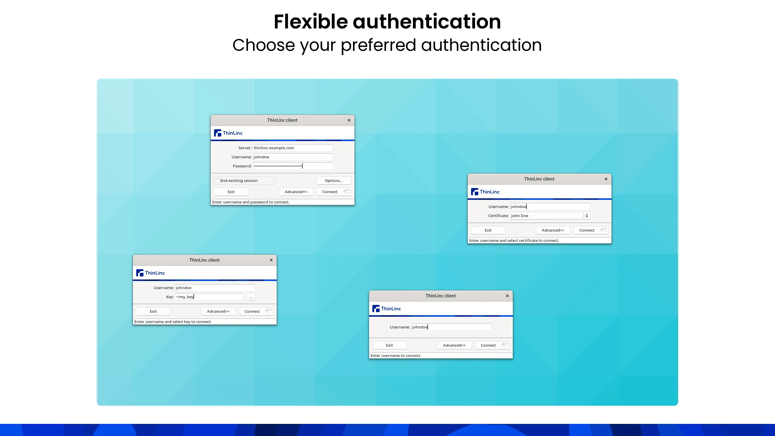 The ThinLinc Client is a remote desktop client used to connect to a ThinLinc Server. With ThinLinc you are able to get access to Linux desktops and applications.
